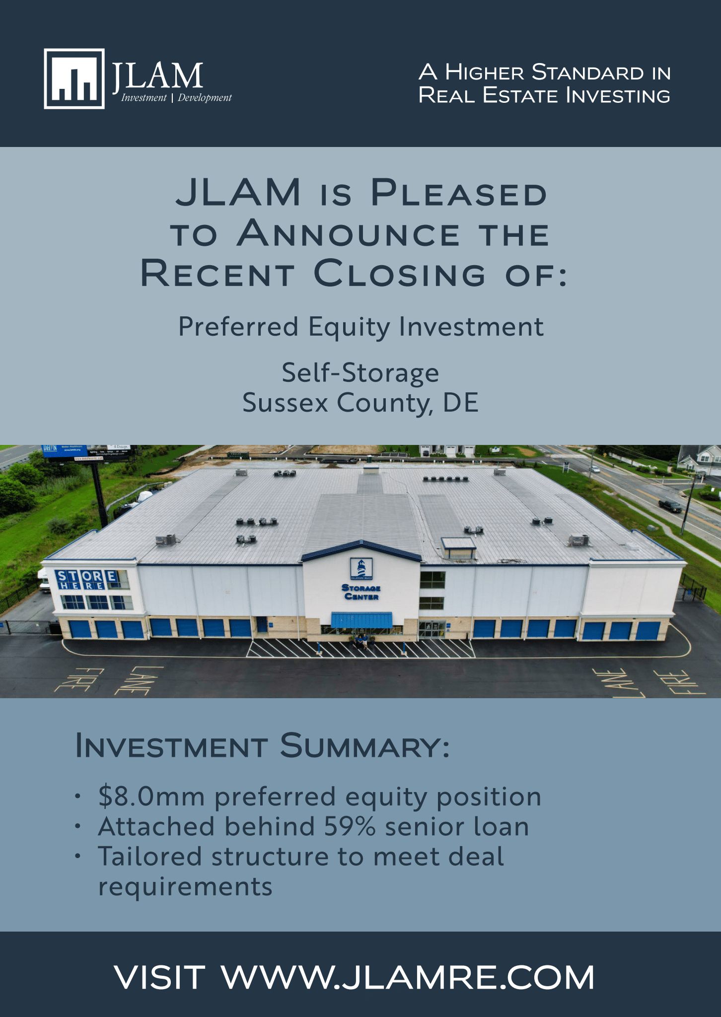 REHOBOTH BEACH- Jack Lingo Asset Management (JLAM) is pleased to announce the recent closing of a preferred equity investment for the acquisition of a self-storage asset located right here in Coastal Delaware.